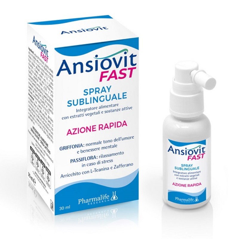 INGREDIENTS: L-Theanine, Griffonia, Lavender, Saffron, Passiflora and Melissa Ansiovit Fast sublingual spray is a food supplement based on plant extracts and active substances, useful as a quick support in case of stress and agitation;